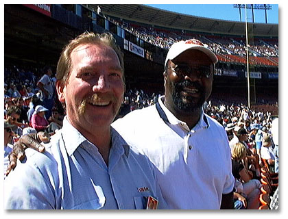 The next stop was the park. As we drove up the peninsula, the weather looked like a typical Candlestick day. It was overcast, breezy and cool. We all found our seats, and just before the game began, the sun came out. It was beautiful for the balance of the day. The cooling breeze, and the full warm sun were a perfect combination for a day at the Stick.