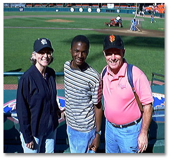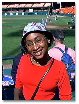 As I suggested in the banner text, Al (Beppp) Thomas brought his family west to witness one last major league baseball game at "The Stick". (3-Com Park just does not cut the mustard.) We all saw the Giants fall in the top of the 9th inning to a tough Cincinnati team. We still enjoyed our day. (Click on the picture in the page banner for a closer look of most of the day's participants.)