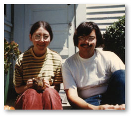 Marilyn (with Brownie on her lap) and Bep at the house on Dean Avenue @ 1976
